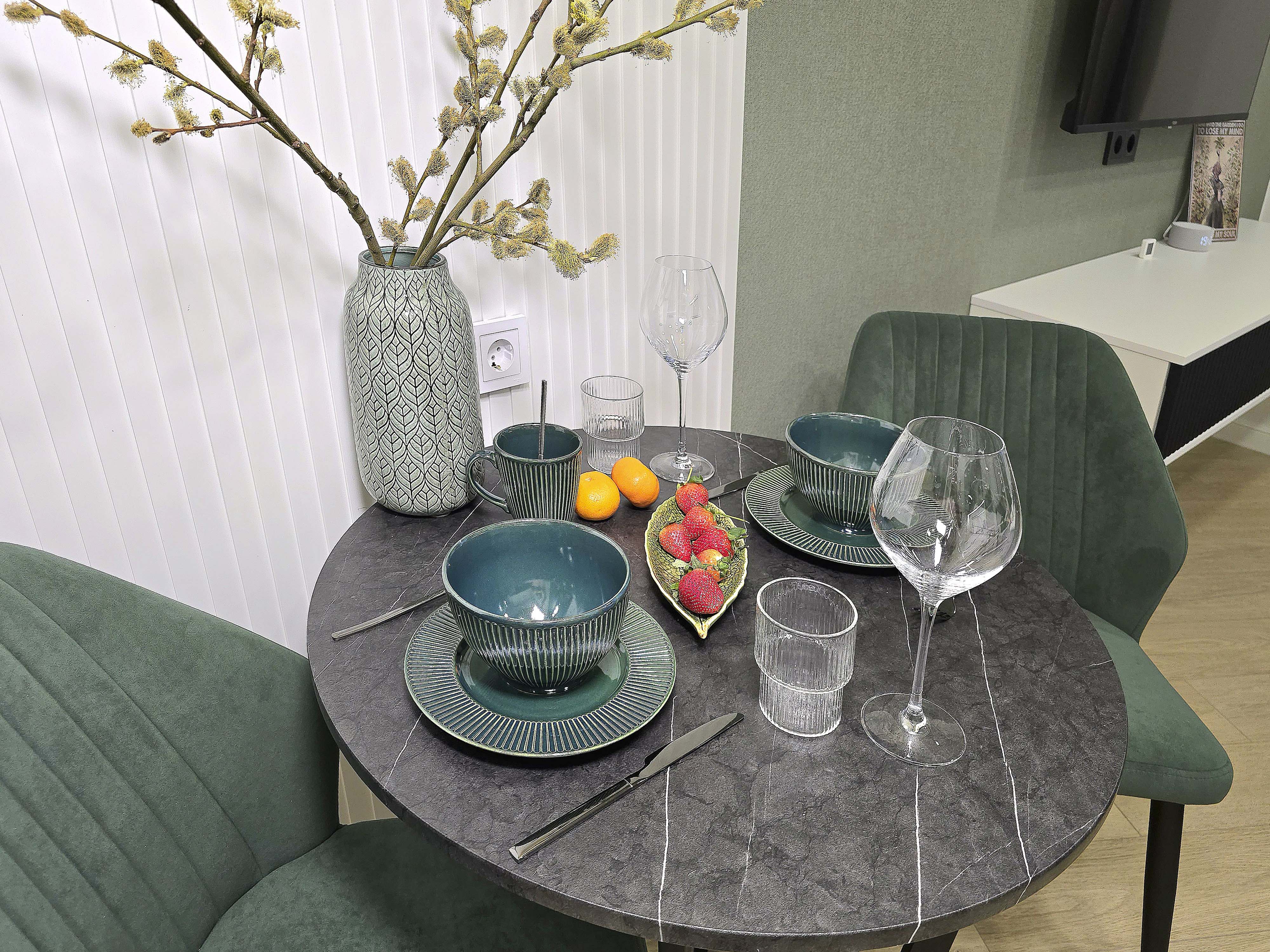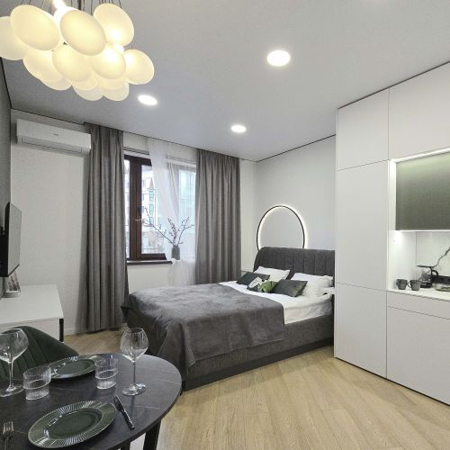Современные апартаменты сочетает в себе стиль и функциональность, создавая атмосферу, где каждый гость сможет расслабиться и насладиться временем вдали от дома. Вся необходимая бытовая техника и кондиционер, капсульная кофемашина, необходимый набор посуды. По два полотенца для каждого гостя, одноразовые средства личной гигиены, одноразовые тапочки, качественный ортопедический матрас.